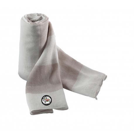 100% coton. Voile de coton très léger avec larges rayures bicolores de 8 cm. Finition bord roulé.