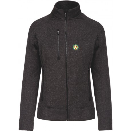 Tricot intérieur gratté 100% polyester. Manches raglan. Fermeture zippée. 2 poches zippées contrastées devant et 1 poche poitrine zippée contrastée. Point de recouvrement sur les découpes. Coupe et matière très confortables. Broderie coeur.