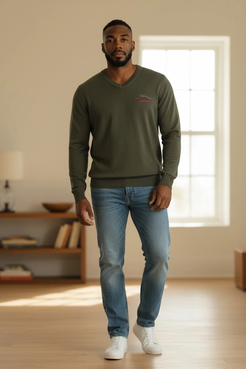 Pull col V Merino Homme Jaguar