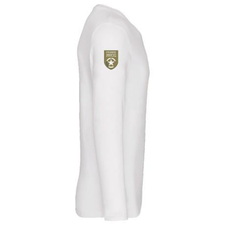Coton peigné avec lavage aux enzymes. Toucher doux, Coupe cintrée mode. Bande de propreté à l'encolure. Finition double aiguille bas de manche et bas de vêtement. Certifié STANDARD 100 by OEKO-TEX®N° CQ1007/7, IFTHBroderie coeur Orléanais + Broderie manche droite logo MVCG France