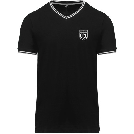 100% coton. Maille piquée en coton peigné. Finitions bord-côte avec rayures contrastées au col et bas de manches. Bande de propreté encolure et fentes latérales contrastées. Finition double aiguille au bas du vêtement.